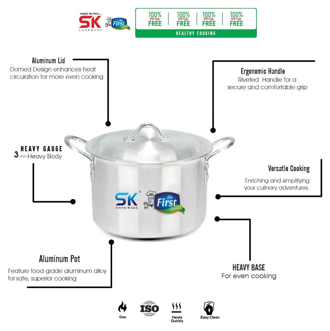 Upgrade your kitchen with the SK Cookware 8-Piece Aluminum King Casserole Set, specially designed to meet the needs of every Pakistani home. Crafted from high-quality materials and manufactured to the highest standards, this set delivers durability, performance, and convenience for your cooking needs.