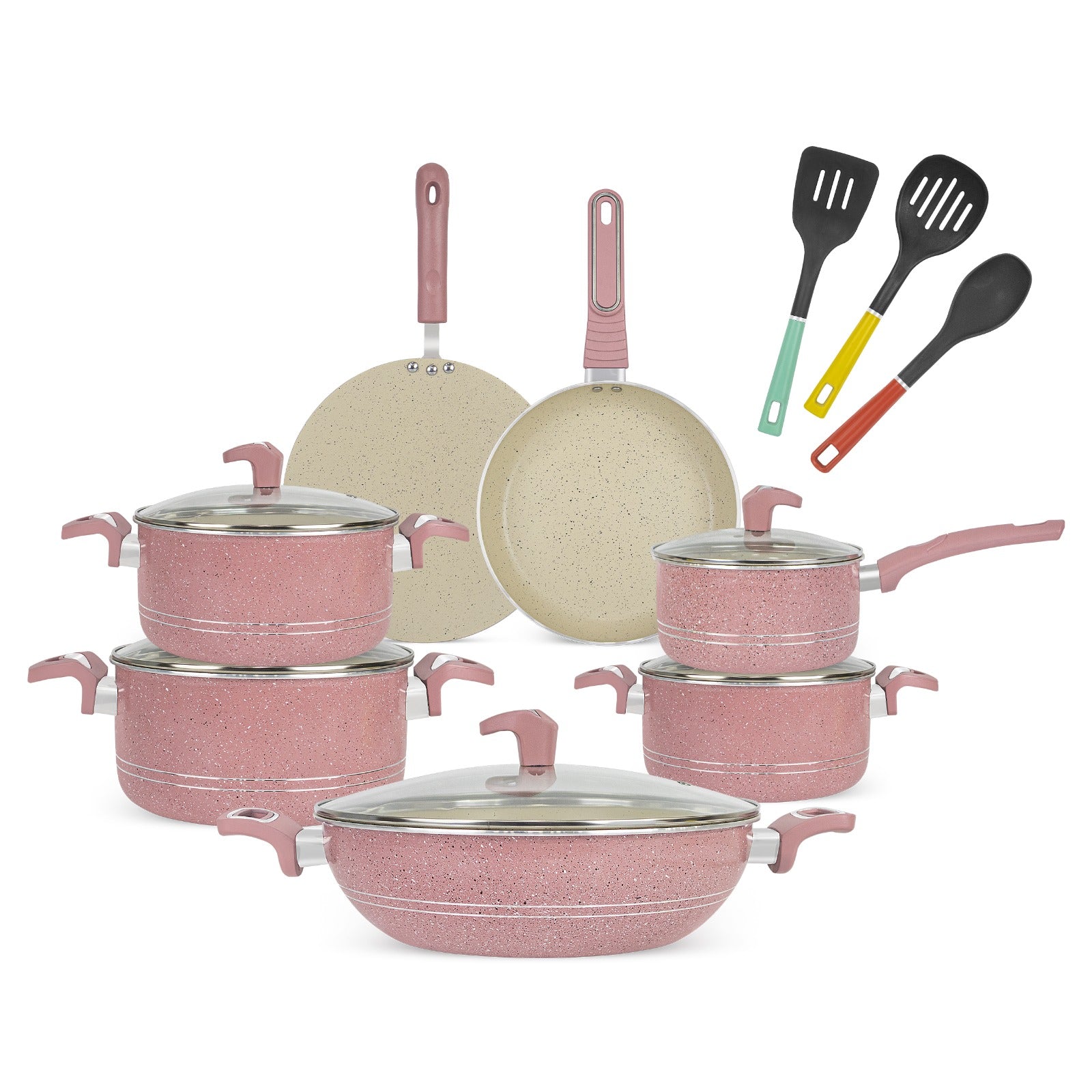 16 Pieces Marble Coated Gift Pack Imperial Cookware Set [Pink & Beige]