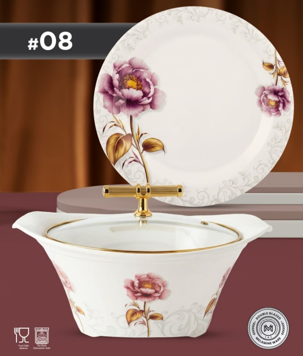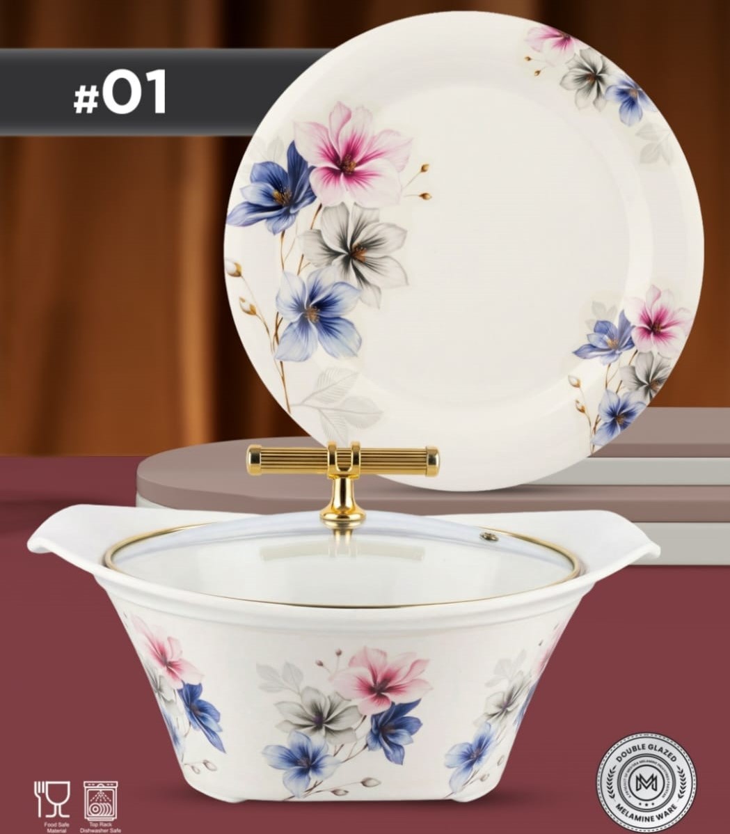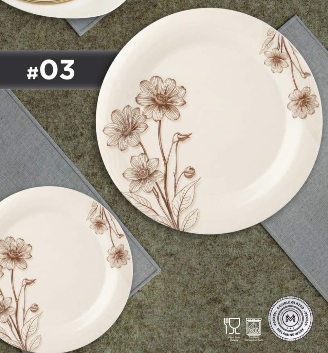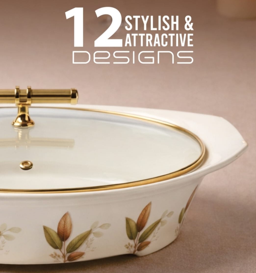 With its beautiful gold-line detailing and modern floral design, this dinner set is perfect for everyday use, family dinners, Dawat, Eid gatherings, and special occasions. The double-glazed finish ensures long-lasting shine, scratch resistance, and enhanced durability.