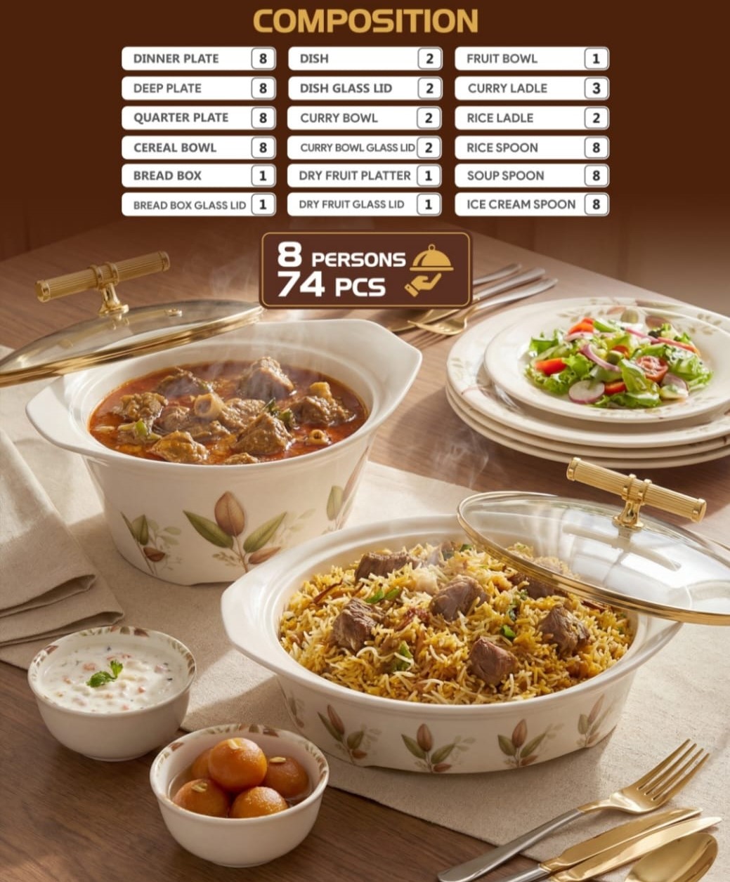 📦 What’s Included (74 Pieces – 8 Persons):